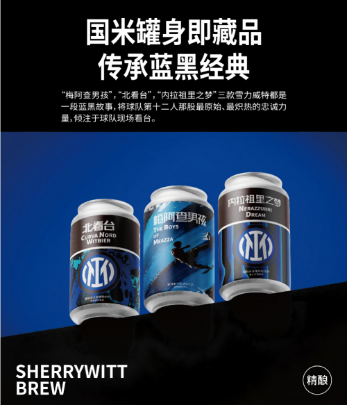 当百年足球豪门的热血基因注入精酿啤酒的醇厚灵魂,一场属于球迷与酒友的狂欢正式开启!备受期待的雪力威特与国际米兰联名款精酿啤酒终于来啦!三款承载蓝黑信仰的特色单品同步亮相,将球员的忠诚与热爱,尽数融入杯中佳酿,为球迷们带来味觉与情怀的双重盛宴~