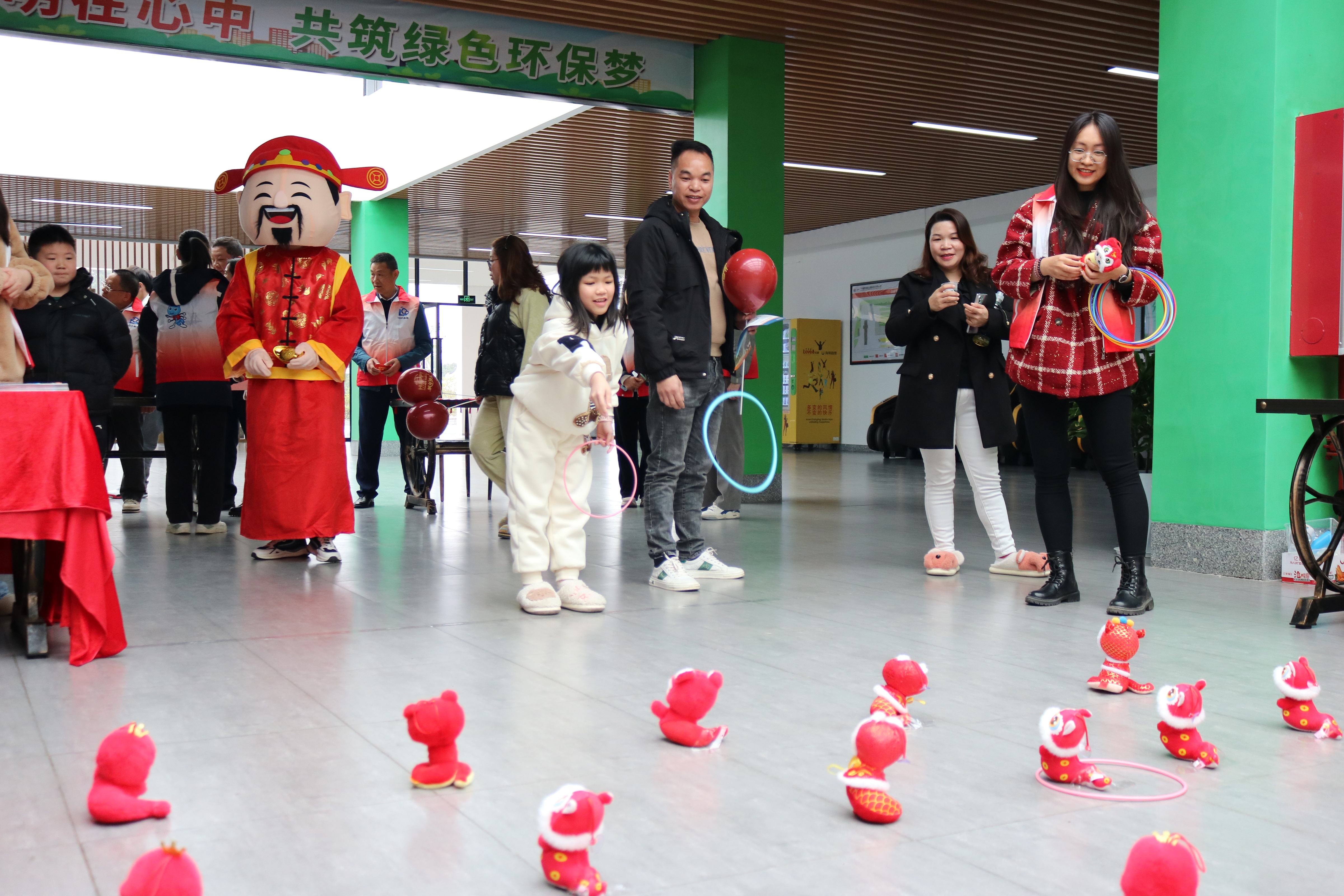 “来杯姜茶暖暖身!”“跟财神爷合照啦!”“小朋友快来玩套圈游戏,套中就赢得一个小蛇玩偶!”在汤塘服务区,惠清高速精心设置了一处“暖心姜茶”饮茶处,组织20余名“小蚂蚁”志愿者开展套圈送玩偶、猜谜语送春联、筷子夹球等趣味游戏,吸引了不少司乘人员前来参与。