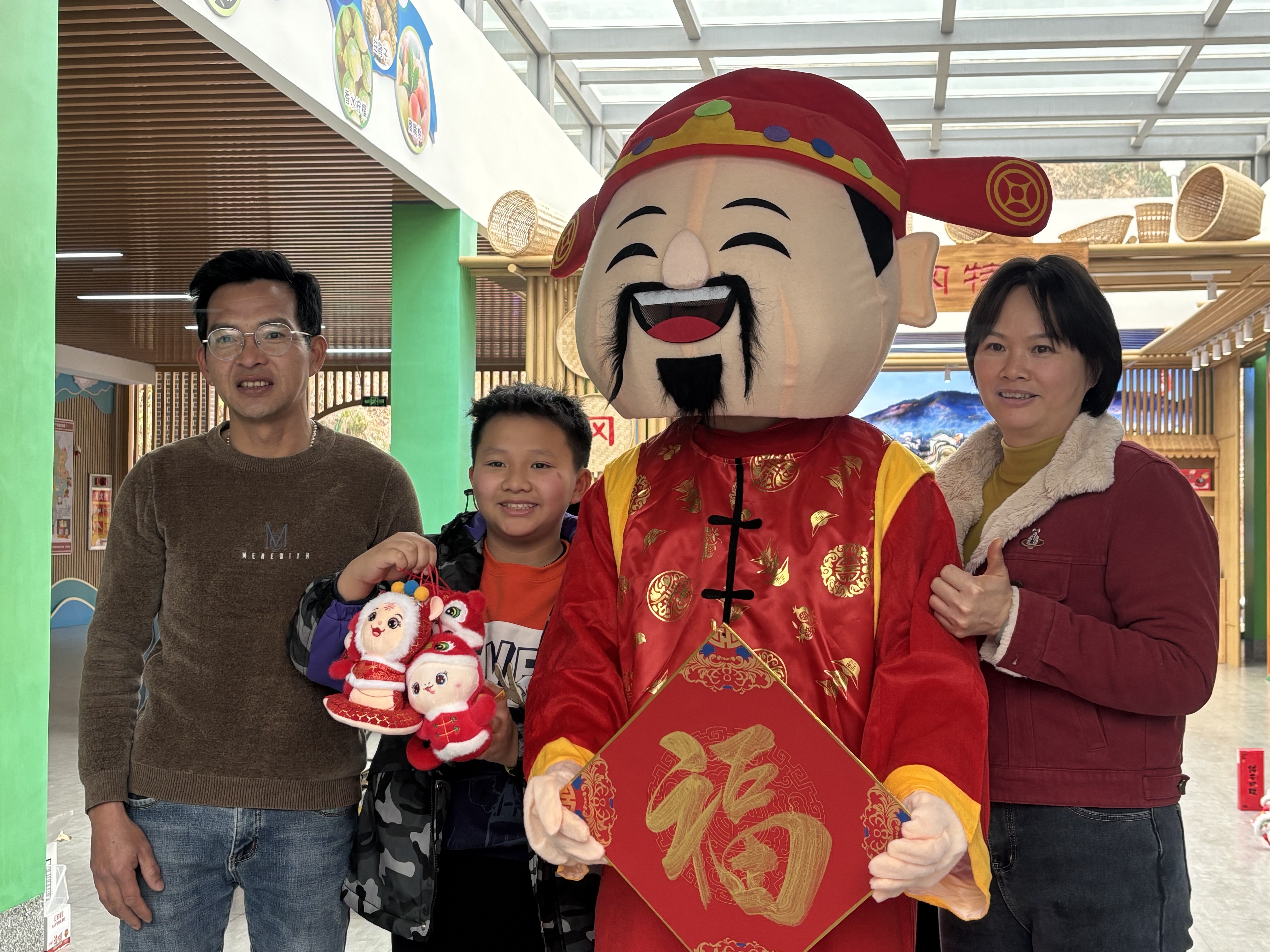 “我们一家五口是自驾从潮州去往贵州,是回孩子们的外公家过年,原本是想停靠在服务区休息一下,没想到还能和女儿们参与到套圈、猜灯谜等年味十足的趣味游戏,赢得了蛇年的可爱玩偶和志愿者亲笔写的春联,真的非常感谢志愿者们的精心组织。”从潮州回贵州的周先生开心地分享道。